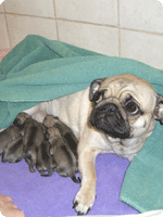 1. הגורים אמורים להתחיל להגיע כ- 5-10 דקות לאחר שירדו המים ונפתח שק ההיריון הראשון. לעולם אל תחכו מעבר לשעה לאחר שירדו המים- במקרה כזה, קראו לווטרינר בהקדם.