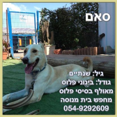 סאם המתוק עדיין ממתין לבית. הוא נמצא בכלוב כבר המון זמן עבר אילוף בהצלחה והוא מבטיח להתנהג למופת. רצוי בית עם גינה. מסתדר עם כלבים אחרים.