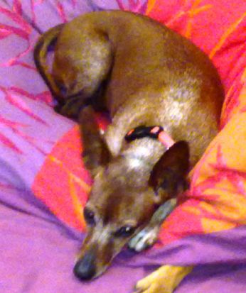 ציפי, כלבתנו האהובה, אבדה. אתמול, 12.8.2011, נעלמה, בפארק מדרון יפו (דרומית לנמל). תיאור כללי: (מצ"ב תמונה) פינצ'רית בת 10. צבע חום, עם שערות שיבה רבות. קולר אדום. בעלת שבב. ציפי, יקרה מאוד לליבנו, והינה חלק בלתי נפרד מהמשפחה. עיזרו לנו למצאה. פרס כספי למוצא !