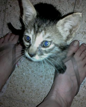 שולמית היא חתלתולה בת חודש וחצי, מנומרת עם קצת ג'ינג'י.
