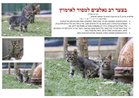 בצער רב נאלצים למסור לאימוץ(יחד או בנפרד) שלישיית גורים, 2 זכרים ...