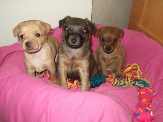 מתוך השלישייה הזו, נשארו לאימוץ הפרוותי האמצעי-זכר, והימנית הקטנה החומה. אלו כלבים שיישארו קטנטנים גם בבגרותם, "כלבי כיס". הזכר- שובב ושמח, הנקבה- עדינה וביישנית. דמי האימוץ כוללים- 3 תילועים, 3 חיסוני משושה, זריקת תולעת הפארק וסירוס/עיקור, והם יימסרו לבתים מעולים בלבד. נמצאים באומנה בכ"ס, טלי
