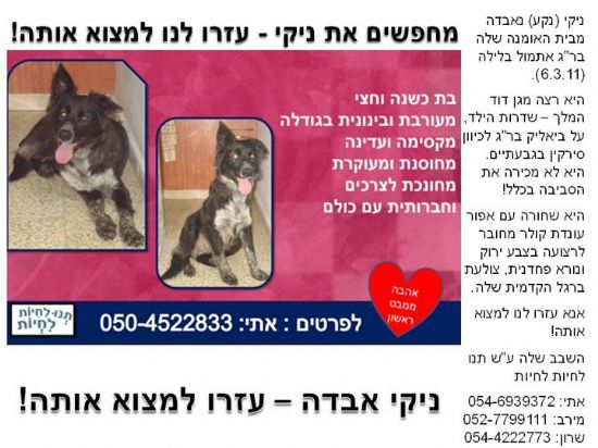 ניקי אבדה... עיזרו לנו למצוא אותה!