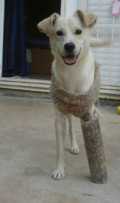 רגלו האחורית נקטעה ע"י הוטרינרים שכן היא היתה רקובה לגמרי ורגלו הקדמית מקובעת בסד מתוך תקווה ששני השברים שיש לו שם יתאחו נכון.