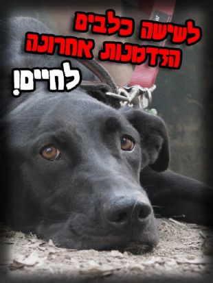 שישה כלבים מועמדים להמתה בכלביית אשקלון. שישה כלבים יפים, צעירים ובריאים. שישה כלבים שיכולים להיות חלק ממשפחה, יכולים לשנות למישהו את החיים בעזרת האהבה האינסופית שהם יודעים לתת והחברות האמיתית וכנה.