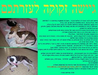 עזרו להציל את הרגל של גיישה ! כל תרומה תעזור. המצב קשה. עזרתכם בדחיפות. הגדילו את המודעה המצורפת , תרמו והעבירו הלאה. תודה.