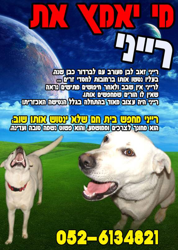 צ'אפה, הכלב של אחי אבד לפני שבועיים (בחול המועד) בש...