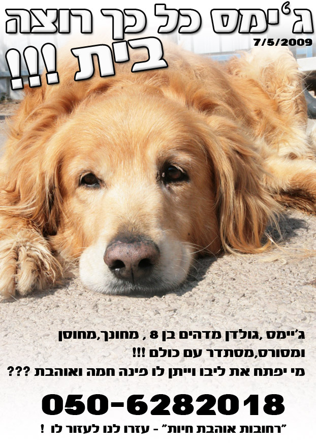 ג'ייס מחפש בית! גולדן מדהים בן 8 מחונך, מחוסן מסורס וחברותי, מחפש נואשות בית חם...