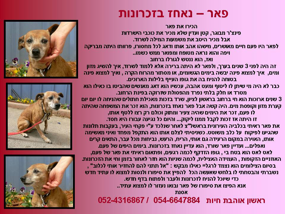 מפרסם המודעה רחובות אוהבת חיות