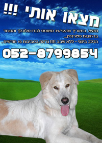 אבדה/נגנבה כלבת מלטז קטנה ולבנה באזור רח' כצנלסון בבת ים. הכלבה אבדה/נגנבה בתאריך 23.12.08. סימני זיהוי - משך הפוך, עפעף אחד אדום. הכלבה נושאת שבב. הכלבה יקרה לליבנו מאוד - אנא עזרו לנו למצוא אותה.