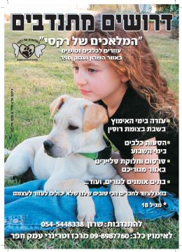 בואו להתנדב למען כלבים נטושים ב"מלאכים של רקסי". עזרה בימי אימוץ בשבתות בצומת רופין,תליית פוסטרים,חלוקת פליירים,בתים אומנים ועוד!